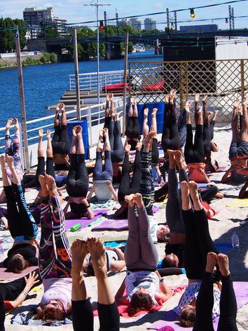 Pour grand public : Organisation d’événements de yoga en partenariat avec des lieux parisiens (rooftop, péniches, lieux éco-solidaires, plages urbaines...)